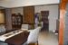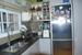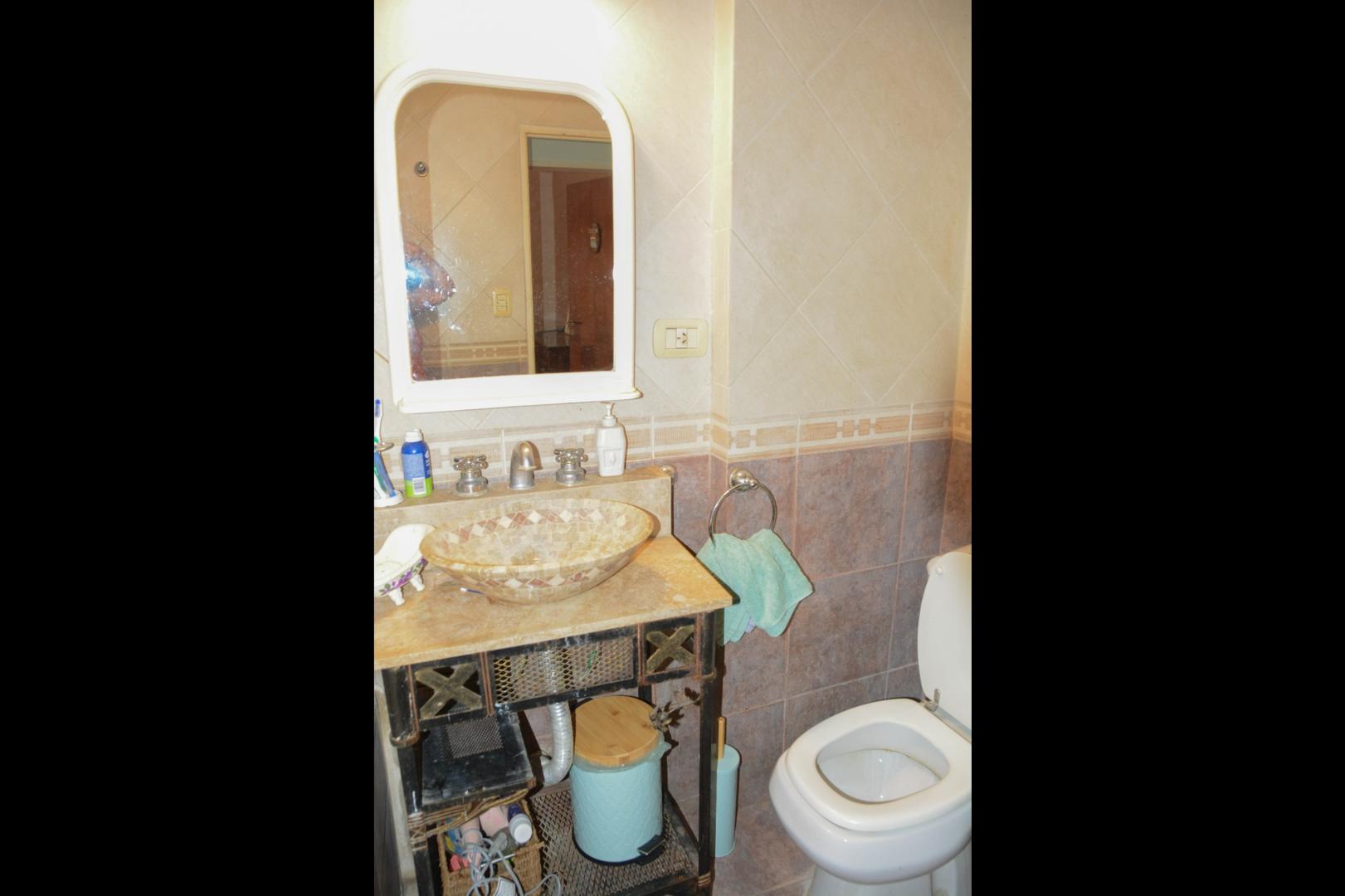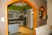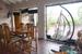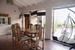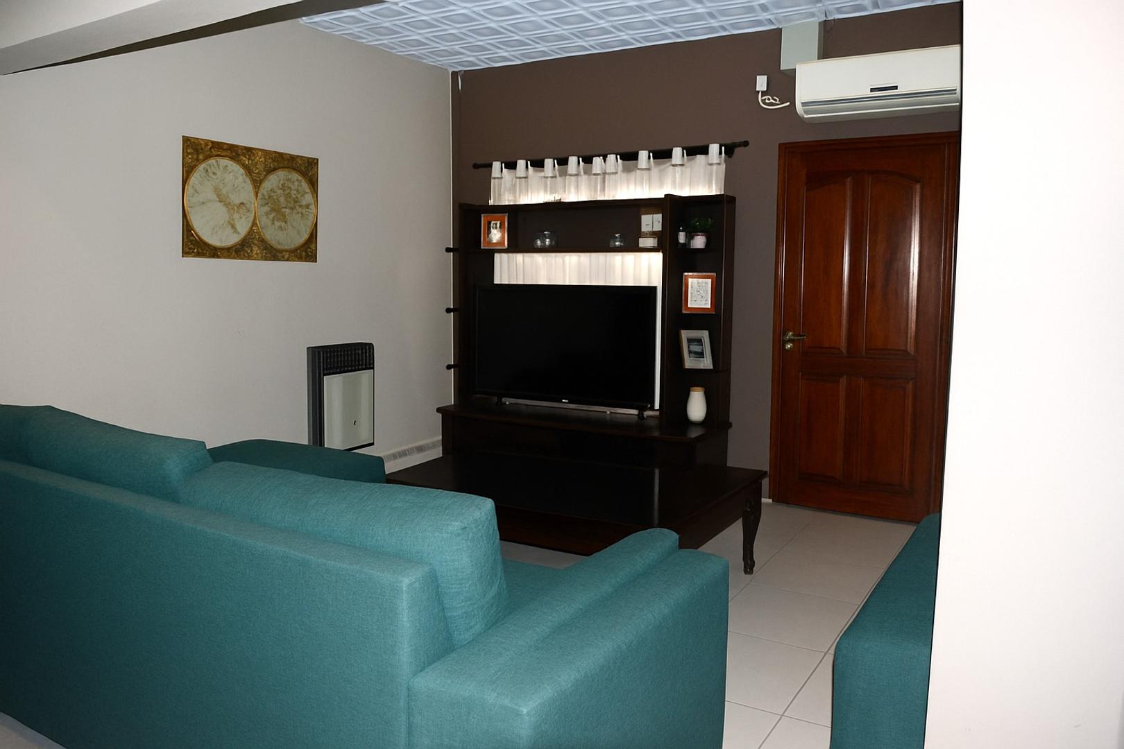 El living-comedor está conectado a la cocina mediante un desayunador y una elegante abertura de paso con marco de madera. La cocina incluye mesada de mármol, bajo mesada y alacena, ofreciendo un entorno funcional y de calidad.