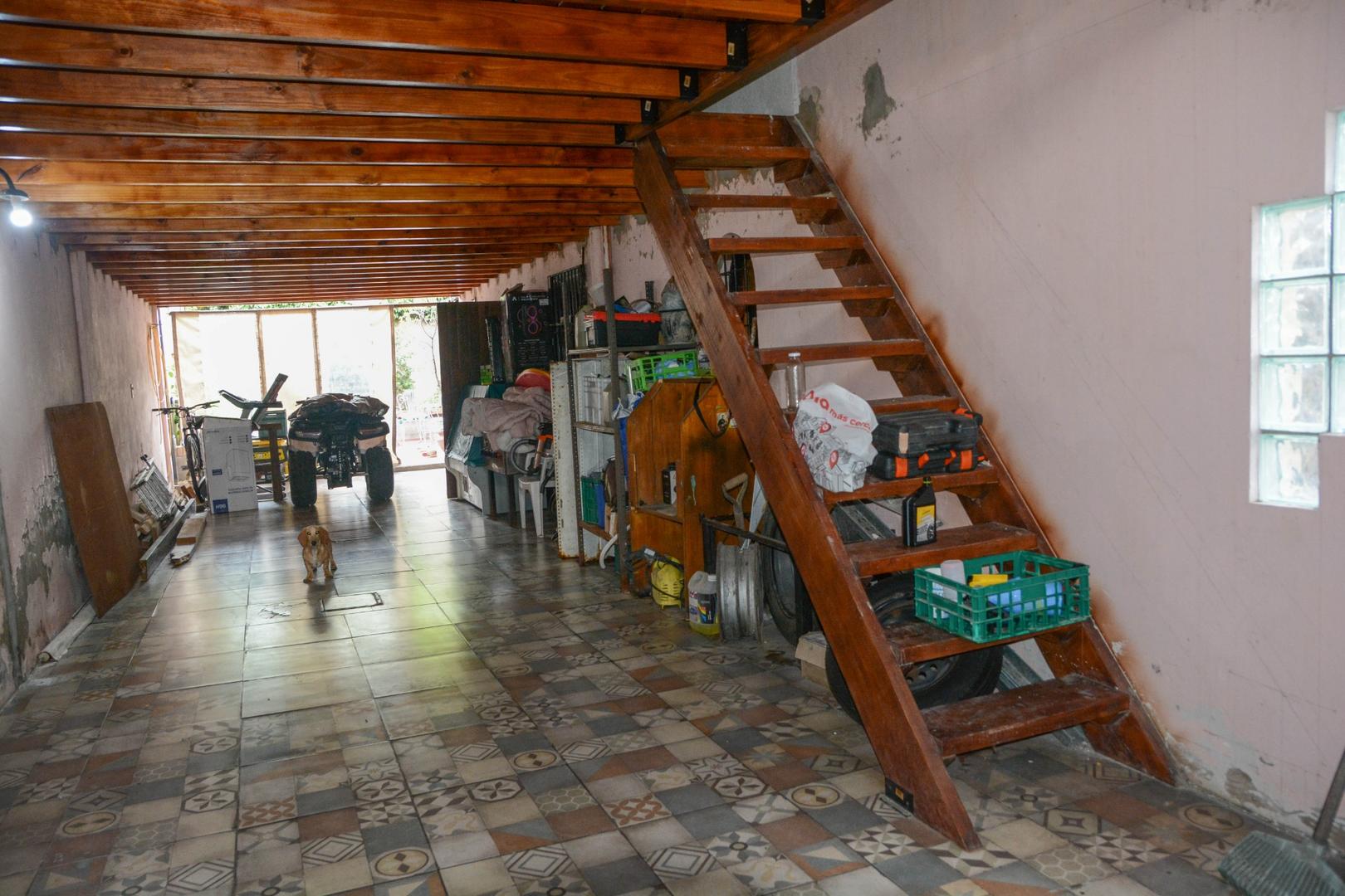 El garaje cubierto tiene capacidad para dos vehículos y cuenta con un práctico entrepiso de madera de 30 m² con baño privado, lo que lo hace ideal para ser destinado a fines laborales o como un cómodo espacio adicional.